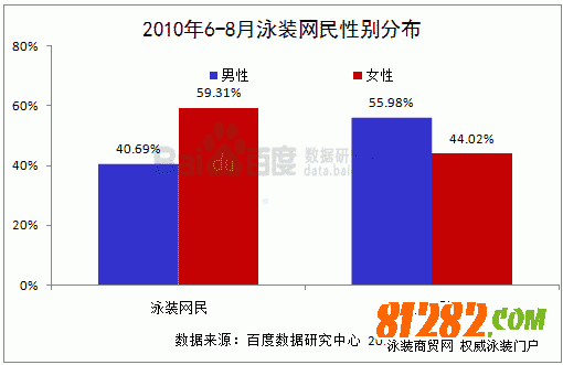 统计数据显示,关注泳装的网民中女性占比较高,达到59.31%,这一比例明显高于全体网民中女性占比。